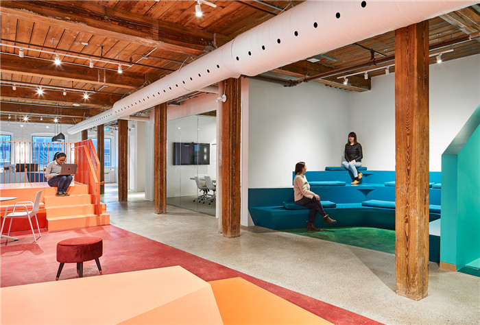 For startup Lift & Co, the best way to express office space is how to meet office needs in limited space, and how to express its brand and social and cultural respect. Inspired by the company's new brand image, the relaxed and fresh beach culture of Southern California, the designer elaborately creates a vibrant and colorful office space to meet the company's growing diversified needs.