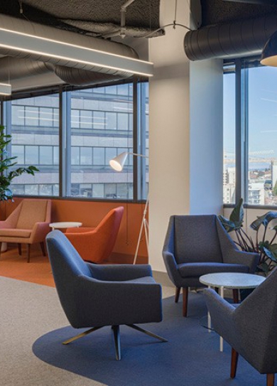 標(biāo)簽: 融合餐廳裝修設(shè)計(jì) 主題餐廳裝修方案 READ MORE科技的觸角無(wú)處不在,解決著人們身邊的各種麻煩,那么科技公司的辦公室都是什么樣的呢?今天鄭州宏鈺堂裝飾小編要為大家推薦的是1200平時(shí)尚多彩醫(yī)療科技公司辦公室裝修設(shè)計(jì)案例。總部位于西雅圖的98point6是一家遠(yuǎn)程醫(yī)療初創(chuàng)公司,它的平臺(tái)將臨床醫(yī)生與人工智能結(jié)合起來(lái),提供基于文本的醫(yī)療服務(wù)。新擴(kuò)張的樓層位于25樓,站在這里,西雅圖的市中心、埃利奧特海灣、以及雷尼爾山盡收眼底。而辦公設(shè)計(jì)團(tuán)隊(duì)也利用這得天