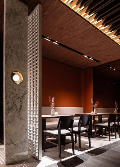 標簽: 1000平辦公室裝修方案 聯合辦公裝修設計 READ MORE本案高端壽司店隱匿在酒店內,整個空間按照日式風格來設計,粗獷的黃銹石,清新的原木點綴朱紅色燈飾,將質感細膩的米黃色粗疏日本涂料墻面,融入新的線條語言,搭配白色和紙移門,枯山水寫意庭院式的侘寂美學,恍然間誤以為跌入日本誰家庭院,無不訴說著別致的優雅。下面就跟隨鄭州餐廳裝修公司宏鈺堂裝飾小編一起來欣賞吧!In this case, the high-end sushi restaurant is hi