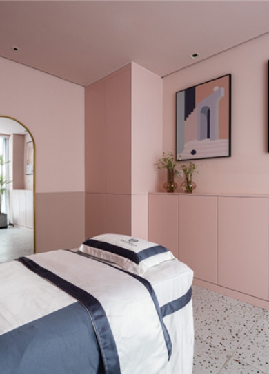 對于變美這件事兒,每一個女人總是不遺余力的。想要抓住女性客戶的心,顏值美是入門基礎條件,對于小型皮膚管理工作室來說,小而美、小而精、小而奢是最好的定位。今天鄭州專業醫美裝修公司宏鈺堂裝飾小編為您帶來的是擊中少女心的小型網紅風皮膚管理工作室裝修方案!客戶接待區用了長虹玻璃做為隔斷,既能起隔斷作用,又能把光線進行導入。窗戶邊運用裝置藝術的思維進行了視覺擺設,適當的空間留白能夠增加空間的視覺延伸感。&n
