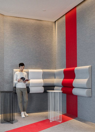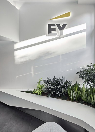 辦公室內(nèi)的設(shè)計和氛圍反映了公司的理念:專業(yè)、高效、透明,以及舒適、友好、自然。在EY安永會計師事務(wù)所升級改造過程中,設(shè)計師強調(diào)新工作空間的統(tǒng)一性、內(nèi)部綠化和舒適性。細節(jié)設(shè)計解決隔音和室內(nèi)音質(zhì)的聲學需求,統(tǒng)一的標識和顏色設(shè)計有助于辨別內(nèi)部空間方向。辦公設(shè)計師重新布局和改動了原有的功能空間。首層空間如今被一間大型會議中心所占據(jù),頂層是幾間董事室,中間的樓層則都是辦公區(qū)域。?其它樓層分布著以各