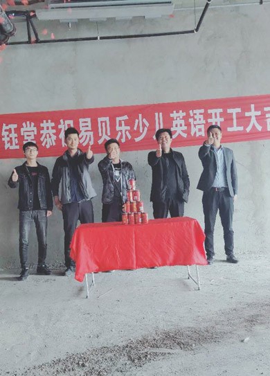 室外暖陽宜人,室內笑語歡聲,宏鈺堂恭賀鄭州易貝樂少兒英語培訓機構裝修開工大吉!易貝樂少兒英語(E-Blocks)創立于2008年,專注于少兒英語啟蒙教育,此次中原萬達分店是宏鈺堂與易貝樂的第二次合作,相信會是強強聯合的雙贏結局。▲易貝樂開工剪影