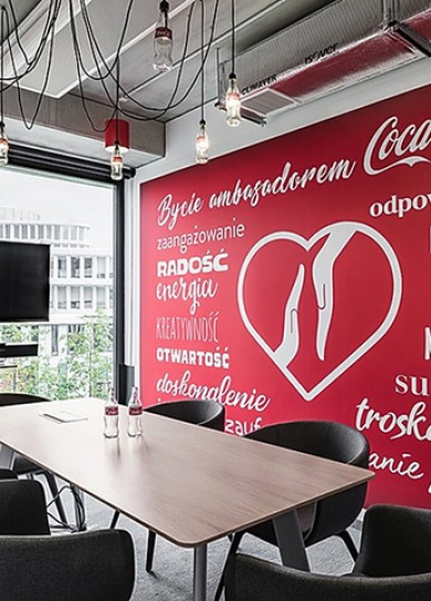標簽: 酒吧裝修設計案例 酒吧裝修設計圖 READ MORE可口可樂HBC(CC HBC)華沙總部辦公室共有5,500平方米,位于華沙的一幢商務花園大樓中。這是一個洋溢著熱情與活力的辦公空間,通過對產品的創意詮釋呈現出獨特的美學空間,也同時論證了這樣一個觀點:誰說工業風就一定是乏味而冷酷的呢?下面就跟隨鄭州宏鈺堂裝飾小編一起來欣賞溫暖的工業風可口可樂華沙總部辦公樓裝修設計案例!辦公室入口處以木和綠植墻來營造溫暖舒適的工業風,同時加入可口可樂的產品陳設;接待