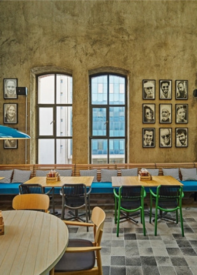位于伊斯坦布爾的第一座土耳其啤酒廠是由博蒙提兄弟在一百年前打造的。如今,這座占地近2000平方米的啤酒廠被Lagranja Design改造成了一家名為“平民主義者”的精釀啤酒廠和大型餐廳。餐廳設計團隊旨在通過此項目讓顧客置身于一種民眾對政治問題群起反抗的精神氛圍之中。下面就跟鄭州餐飲裝修公司宏鈺堂小編一起去欣賞吧! 除了餐廳室內裝飾之外,該項目的內容還包括攝影和平面設計、定制家具設計和