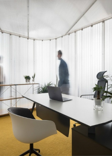 標簽: 健身房設計 瑜伽工作室裝修 READ MOREAgriEnergia電力公司近期搬遷到了更靠近巴尼奧萊斯市中心的位置,并在城市主街的一角開設了新的售后服務中心。本案旨在通過置入一座光屏來改變辦公空間的內部路徑。這座發光的墻壁呈斜角橫跨于空間內部,將辦公室劃分為顧客接待區和工作及私人區域。下面就隨鄭州專業辦公室裝修公司宏鈺堂裝飾一起來欣賞一下。建筑的外觀給人一種不甚清晰的感覺,從位于街道層的大門進入建筑之后,來訪者將通過一系列連續而開放的辦公空