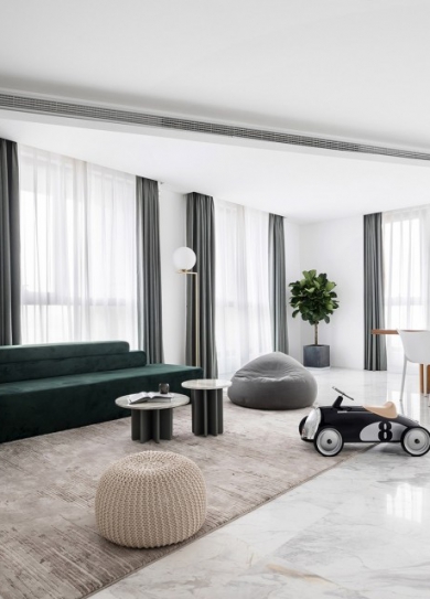 標簽: 中式面館設計案例 特色面館裝修 READ MORE無論是服裝還是空間,都需要經得住時間的考驗?! ∽哌M這間服裝品牌辦公室,猶如走進一間冥想的場所,白色大理石與乳膠漆的材質結合與碰撞,充滿了各種幻想與無限可能。 整個空間的設計理念從一條白色的裙子、月光以及T臺延伸而來,空間呈現出極簡與清新的感受,與主人的實用主義理念相契合。下面就隨鄭州辦公室裝修公司宏鈺堂裝飾一起來欣賞?! 〉谝挥橙胙酆煹谋闶歉拍顓^,擺放著藝術吊燈與藝術裝置,代表著主人對于設計