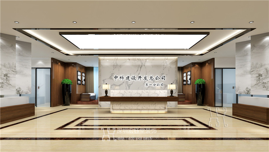 本案甲方是中科建設,作為一家建筑企業,宏鈺堂專業辦公室裝修公司對該項目的定位是在傳統新中式辦公裝修設計風格總保留穩重低調的氣質,增加現代元素的點綴。整體給人的感覺是恢宏大氣,有大家風范,顯示了企業的實力。項目地址位于鄭州市鄭東新區5A級寫字樓楷林IFC,交通位置非常便利。